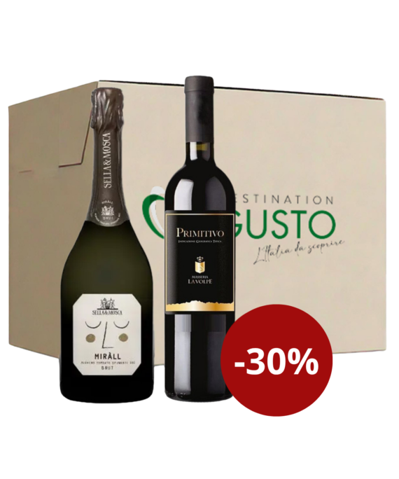 6 bottiglie di Primitivo Puglia IGT + 6 bottiglie di Alghero Spumante Torbato DOC “Miràll”