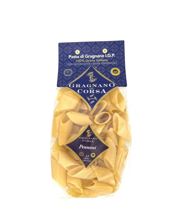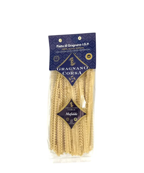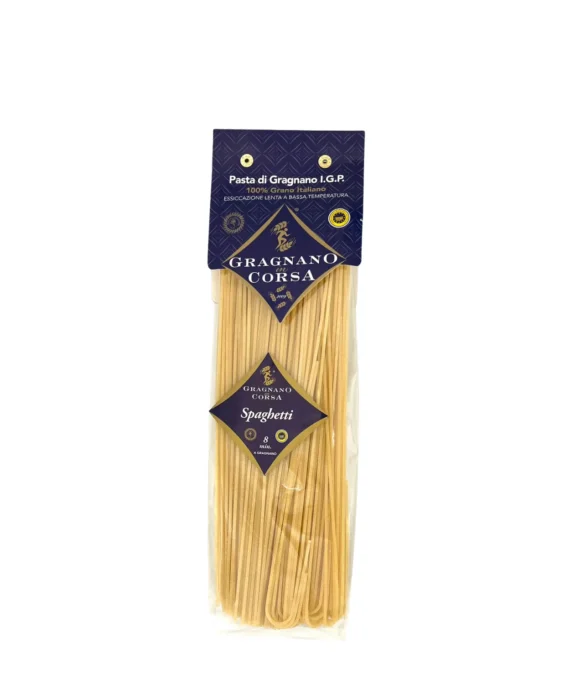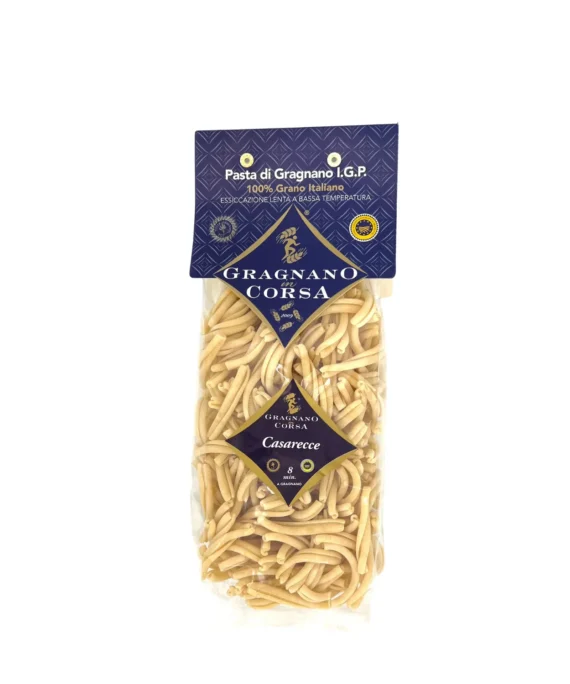 La trafilazione al bronzo, come da tradizione gragnanese, conferisce alla pasta quella rugosità caratteristica che permette di trattenere meglio il condimento. L'essiccamento, infine, a basse temperature (mai superiori ai 45°C) e in celle statiche per tutto il tempo necessario (non meno di 48 ore) favorisce i fenomeni di fermentazione superficiale che sono il segreto dell'aroma e del sapore particolare della pasta prodotta da Gragnano in Corsa.