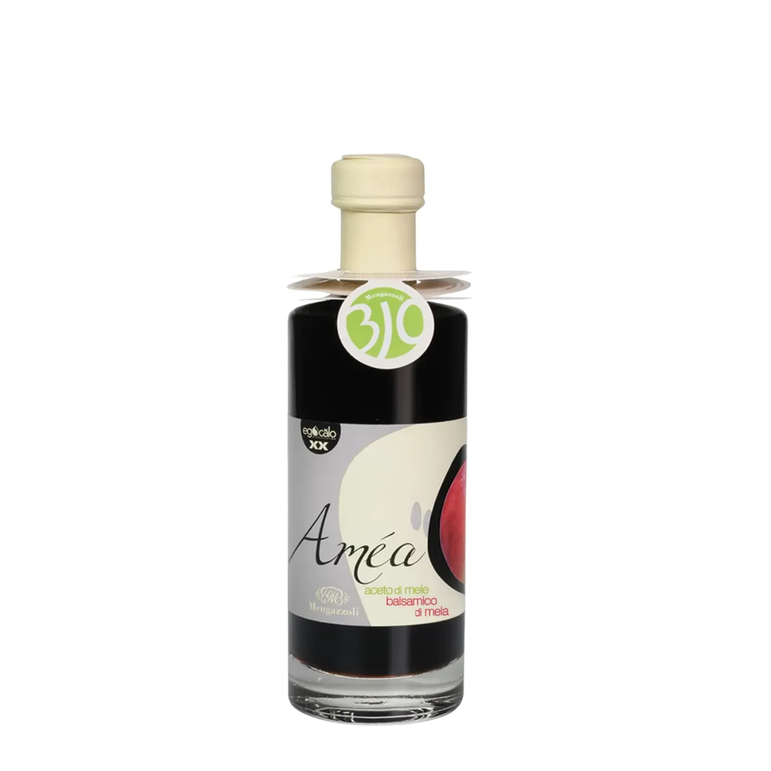 Aceto biologico caratterizzato da uno spiccato aroma agrodolce e fruttato, da una palpabilità vellutata, ottenuto nella preparazione con succo di mele concentrato, fermentato in modo naturale-statico in barriques e lasciato maturare per un lungo periodo per ottenere una trasformazione diretta degli zuccheri in acido acetico e creare così un’acidità meno pungente e un giusto equilibrio con i residui zuccherini della materia prima.