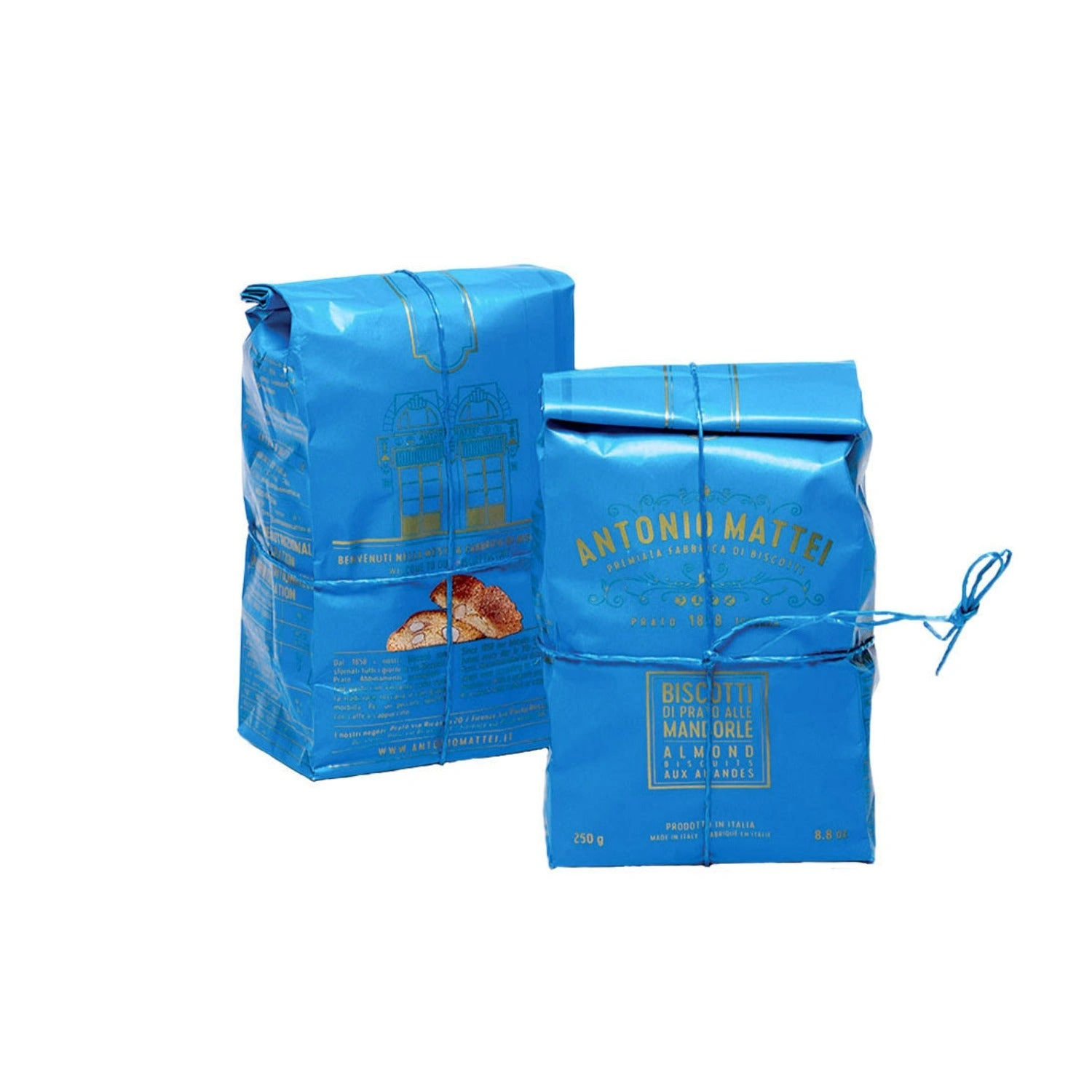 Dal 1858 i Biscotti Mattei vengono sfornati quotidianamente negli stessi ambienti dello storico biscottificio e confezionati a mano uno a uno, nel classico sacchetto Blu Mattei.