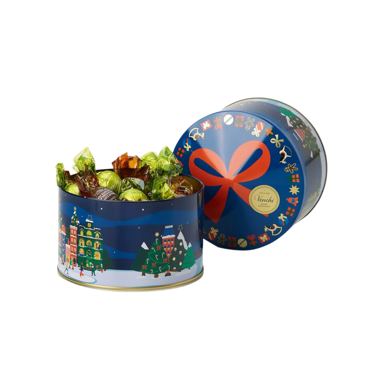 La Cappelliera Natalizia di Metallo Alice di Venchi è un’elegante confezione regalo in latta contenente una selezione di 8 raffinati cioccolatini Venchi. Ogni pralina è realizzata con ingredienti di altissima qualità e celebra la tradizione piemontese del cioccolato con nocciole Piemonte IGP, pistacchi, mandorle e cacao pregiato. Una proposta ideale per chi desidera un dono natalizio ricercato, dal gusto autentico e dall’estetica elegante. Perfetta come pensiero gourmet per le festività.