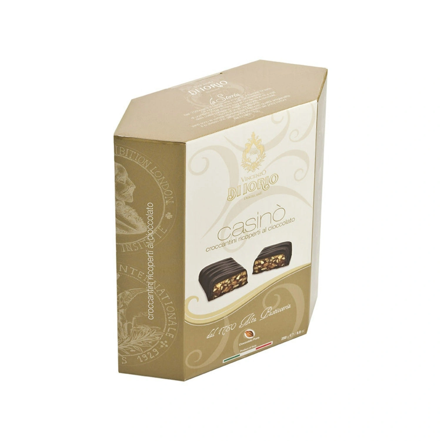 Croccantino di nocciole ricoperto di finissimo cioccolato fondente al 60% cacao.