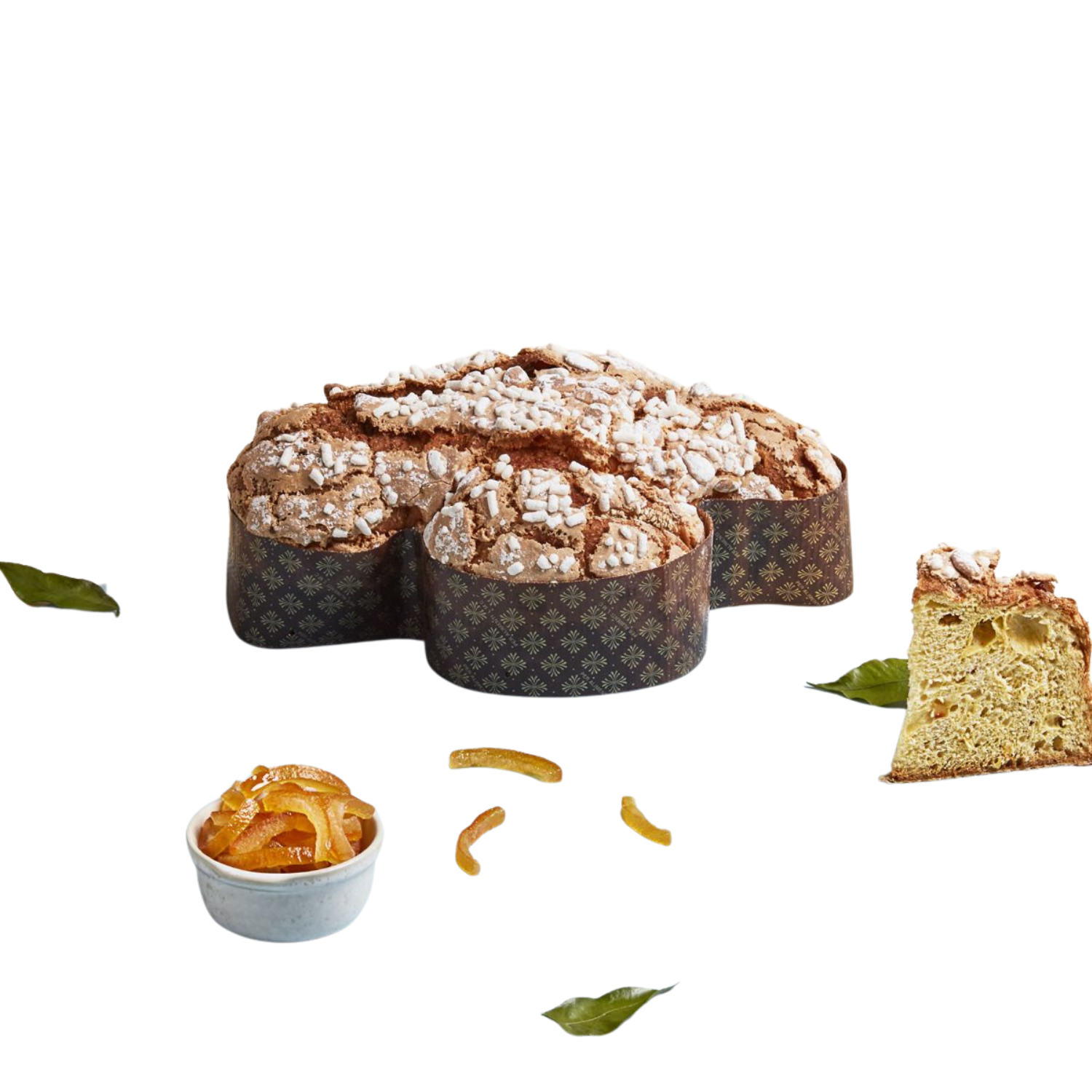 Ogni colomba nasce da un impasto preparato con farina di grano tenero selezionata, burro di alta qualità e lievito madre, lavorato con pazienza e competenza. I canditi di arancia siciliani arricchiscono la struttura soffice con note agrumate fresche e profumate, tipiche della tradizione pasquale.