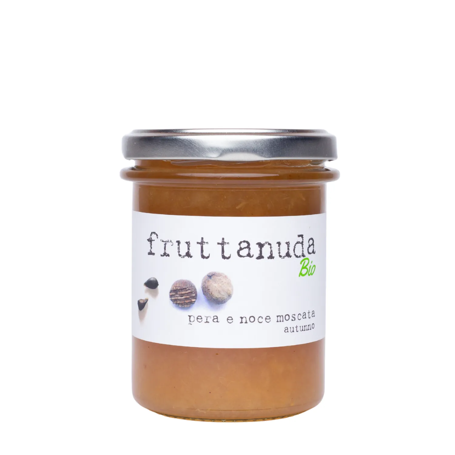 La Confettura Extra di Pere Williams e Noce Moscata di Fruttanuda è una confettura biologica realizzata con pere Williams italiane e un tocco di noce moscata bio, che le conferisce un aroma speziato e raffinato. Prodotta senza addensanti, coloranti o aromi artificiali, viene cotta e pastorizzata lentamente per preservare le caratteristiche naturali della frutta. Con il suo gusto dolce e aromatico e la consistenza vellutata, è perfetta per colazioni gourmet, dessert o abbinamenti con formaggi stagionati.