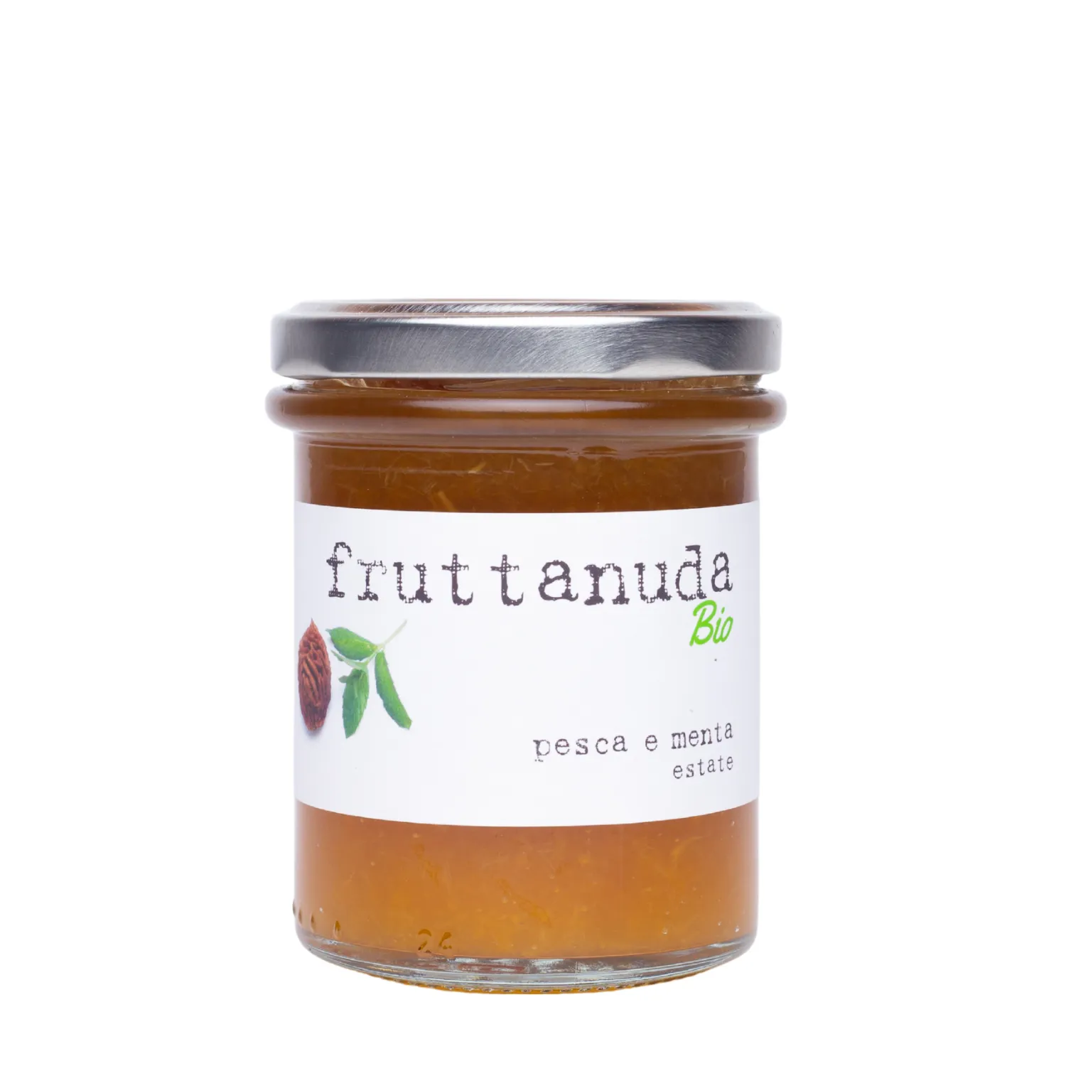 La Confettura Extra di Pesca e Menta di Fruttanuda è una confettura biologica dal gusto fresco e aromatico, realizzata con pesche italiane di stagione, menta biologica e zucchero di canna bio. Prodotta senza addensanti, coloranti o aromi artificiali, viene cotta e pastorizzata lentamente per preservare le proprietà naturali della frutta. Il risultato è una confettura equilibrata, dove la dolcezza delle pesche incontra la nota balsamica e vivace della menta. Perfetta per colazioni, dessert e abbinamenti originali con formaggi freschi o yogurt.