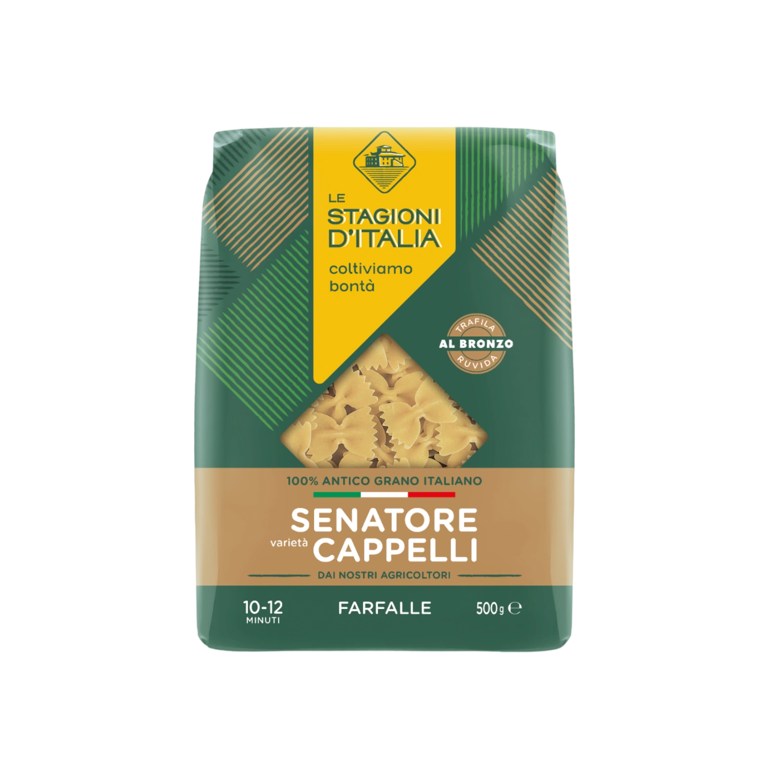 Le Farfalle varietà Cappelli Le Stagioni d’Italia è una pasta di grano duro prodotta solo con grano italiano.