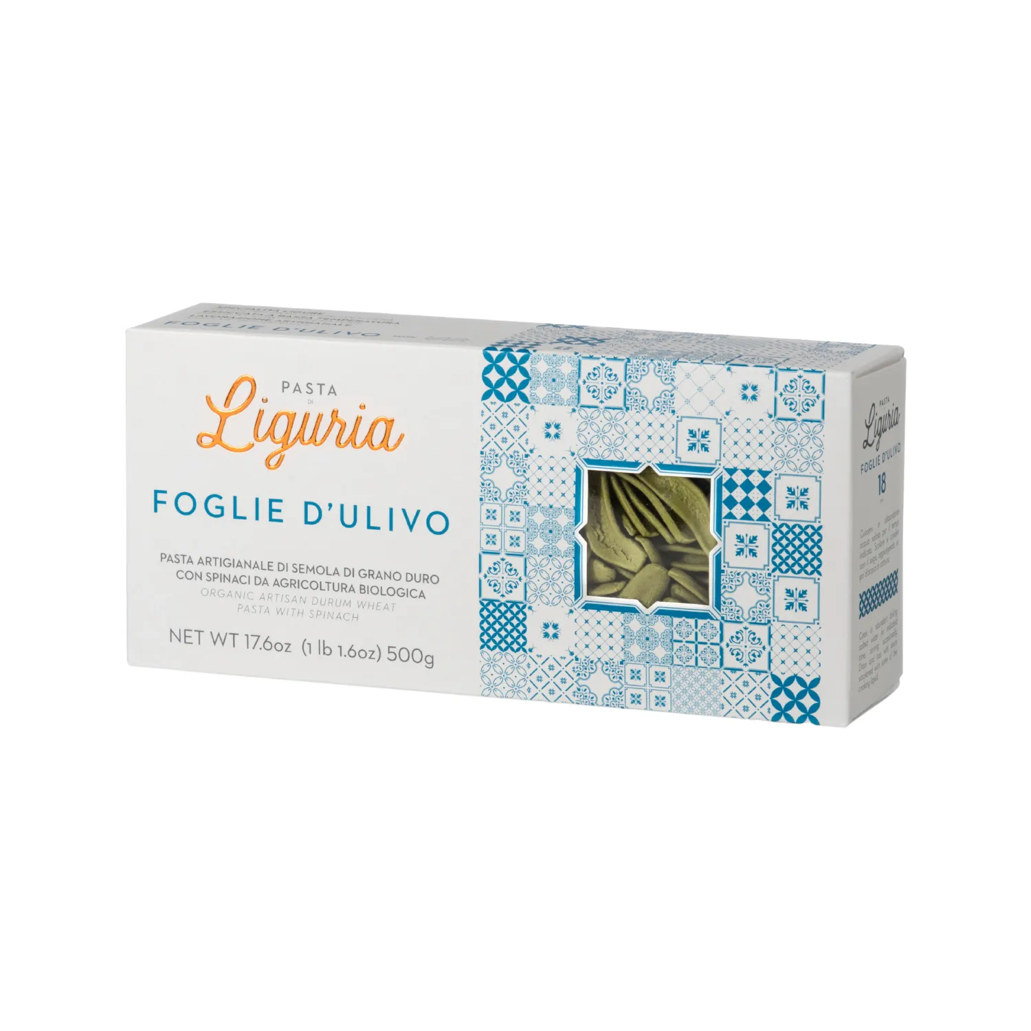 Le Foglie d’Ulivo Bio di Pasta di Liguria sono un formato unico ispirato alla tradizione ligure. Realizzate con semola di grano duro biologico e spinaci disidratati, sono ideali per primi piatti originali e gustosi. Trafilate al bronzo e a lenta essiccazione, garantiscono una tenuta perfetta in cottura e assorbono al meglio i condimenti.
