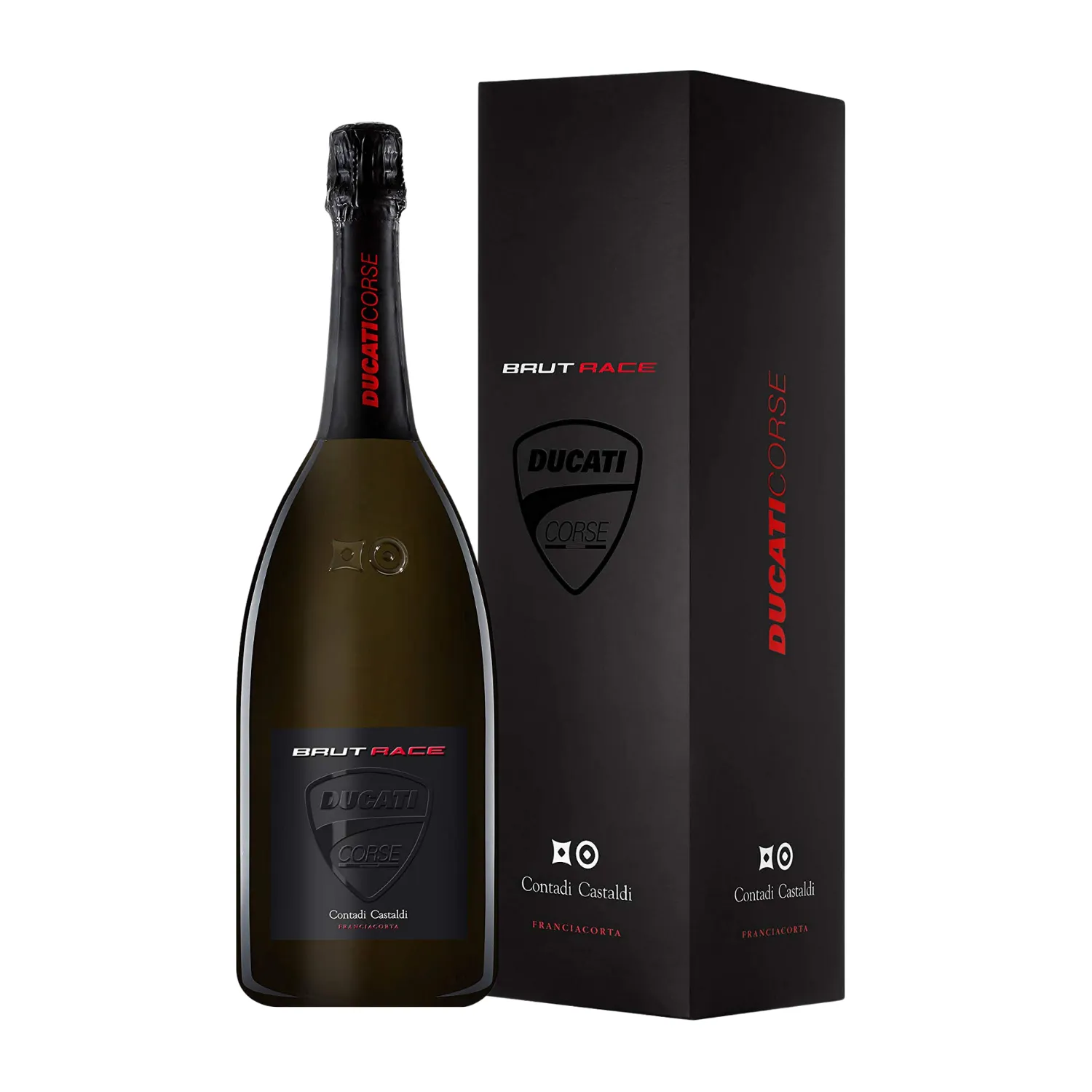 Un Franciacorta moderno e vibrante, nato dalla collaborazione tra Contadi Castaldi e Ducati Corse. Il Brut Race unisce freschezza, dinamismo e carattere sportivo. Composto da Chardonnay, Pinot Nero e Pinot Bianco, affina sui lieviti per oltre 20 mesi ed esprime una spuma elegante e persistente. Note agrumate, cedro e frutta tropicale si uniscono a una bocca tesa, croccante e dal finale pulito. Presentato in astuccio Ducati, è perfetto per celebrare con stile.