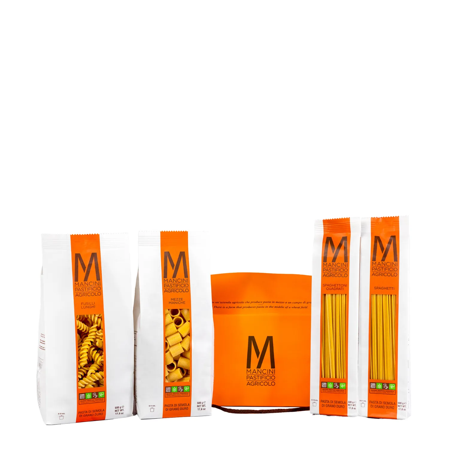 Il cofanetto Handy Mini di Pasta Mancini è una box regalo pratica ed elegante in cartoncino liscio con maniglie in corda. Contiene 2 kg di pasta Linea Classica, con i formati più rappresentativi del marchio: Spaghetti, Spaghettoni Quadrati, Fusilli Lunghi e Mezze Maniche. Una selezione pensata per offrire la qualità e la tradizione di Pasta Mancini in una confezione perfetta per ogni occasione.