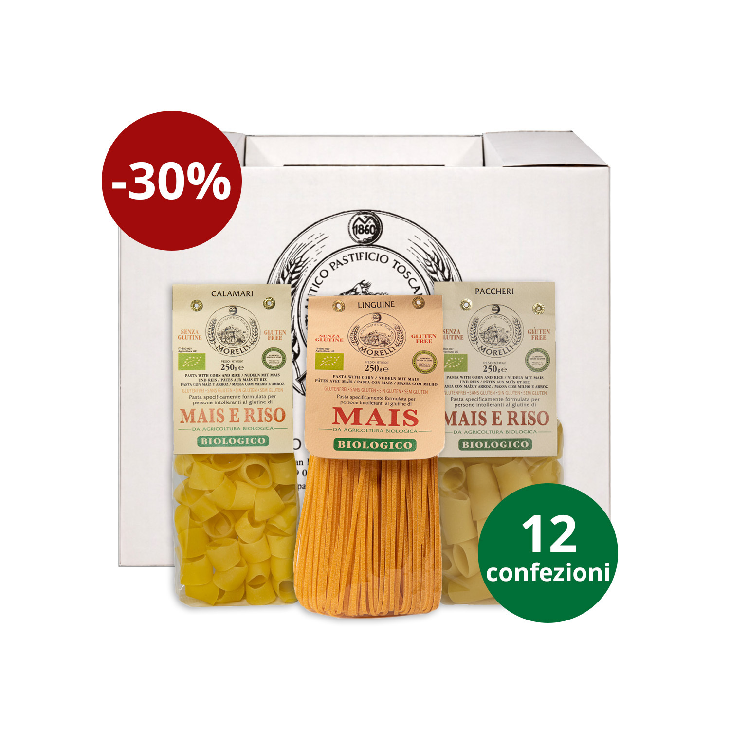 Il Kit Senza Glutine del Pastificio Morelli è una selezione di formati realizzati con ingredienti biologici come mais e riso, studiati per offrire equilibrio, digeribilità e una resa eccellente in cottura. Grazie alla lavorazione artigianale e all’attenzione nella scelta delle materie prime, questa pasta mantiene una consistenza piacevole e sempre al dente, con una texture ideale per trattenere i condimenti e valorizzare ogni ricetta.