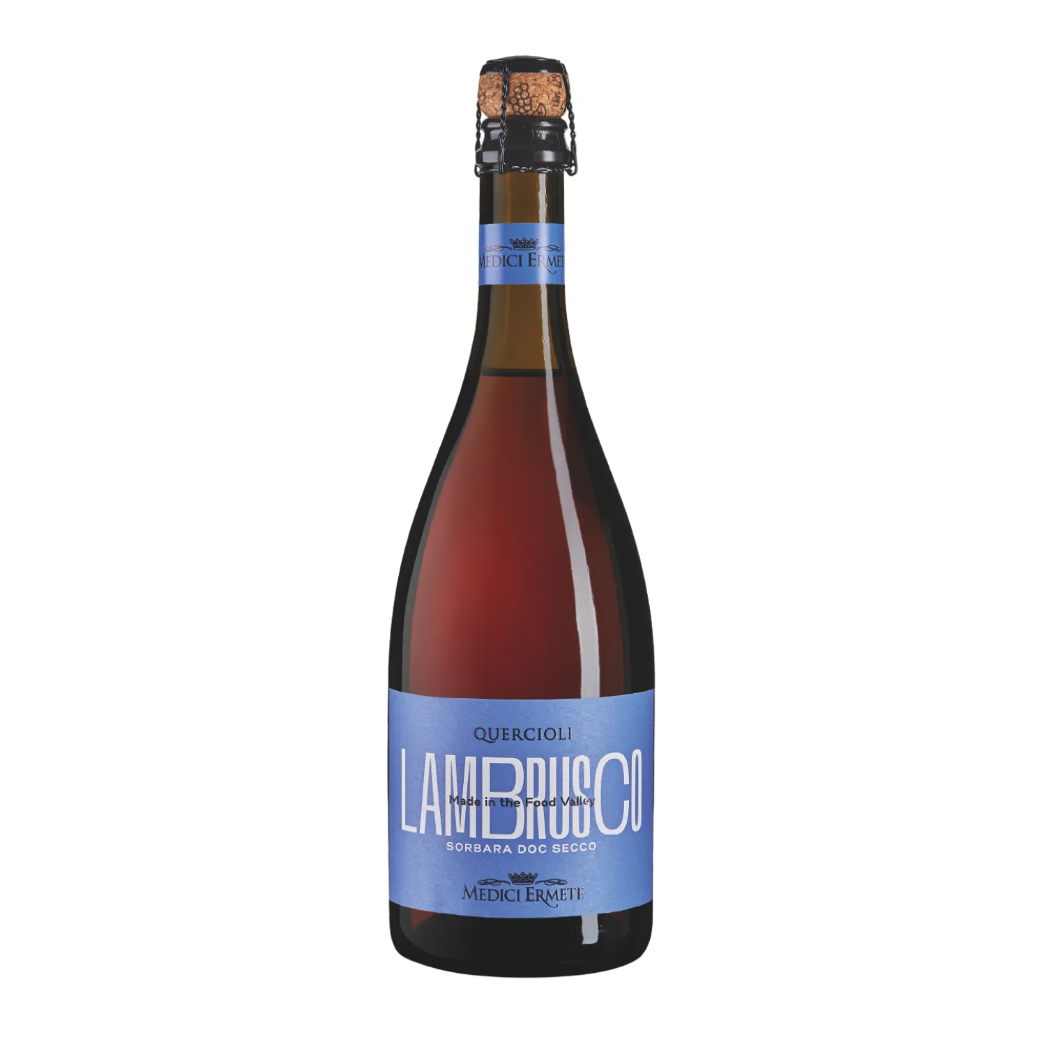 Il Lambrusco di Sorbara DOC “Quercioli” di Medici Ermete è un vino rosso frizzante secco, autentica espressione della tradizione modenese. Ottenuto da uve Lambrusco di Sorbara coltivate nella provincia nord di Modena, si distingue per il colore rosso vivace e poco intenso e per la spuma fine e persistente. Al naso regala profumi gradevoli e floreali con sentori di viola, mentre al palato è asciutto, fruttato, fresco e brioso. Un Lambrusco elegante e versatile, perfetto per accompagnare i piatti tipici della cucina emiliana.