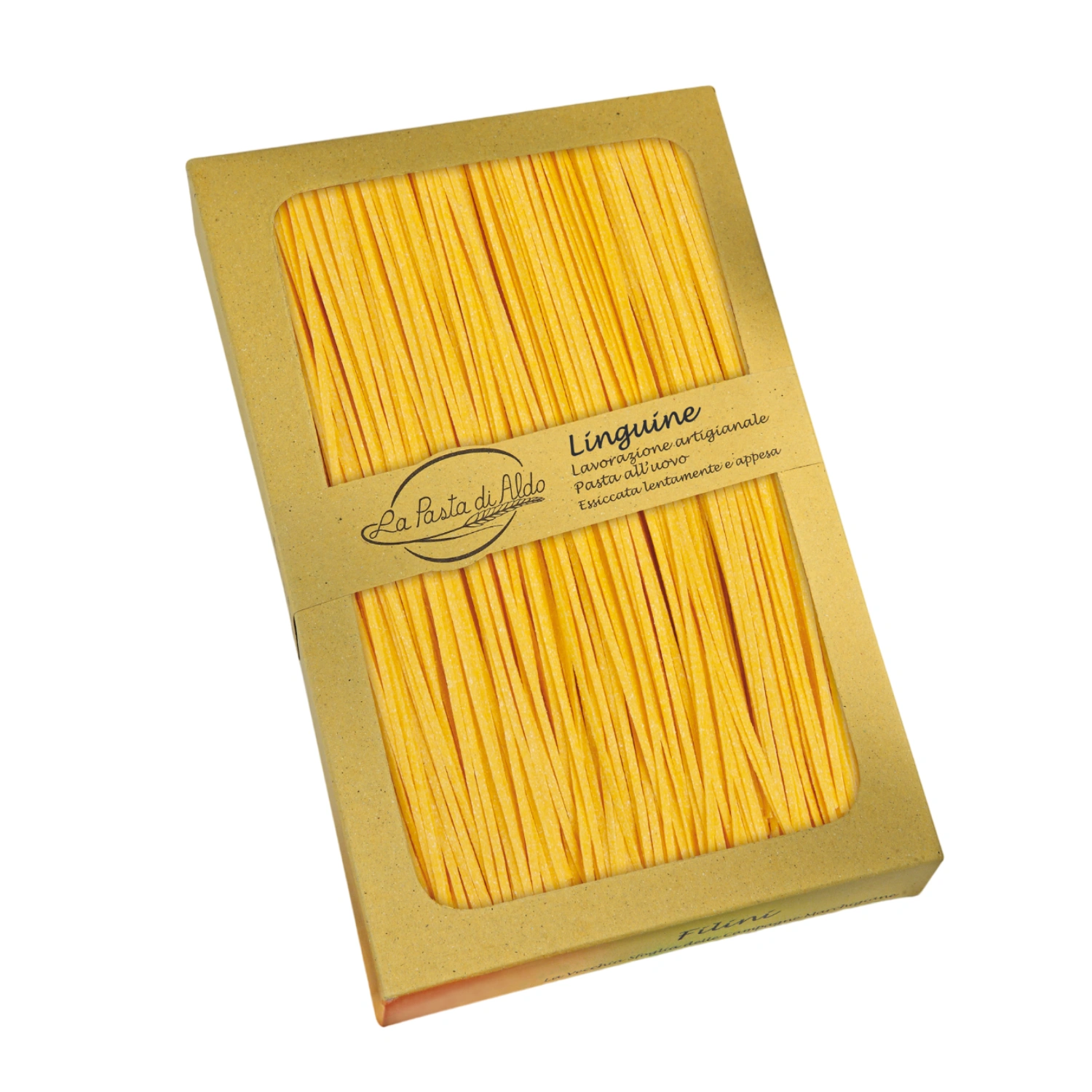Le Linguine all’uovo sono realizzate utilizzando solo uova fresche e farina di alta qualità , creando una pasta che si distingue per la sua consistenza morbida anche al dente. La nostra meticolosa lavorazione garantisce un risultato perfetto, con ogni linguina che si separa delicatamente durante la cottura, assicurando una distribuzione uniforme del sugo.