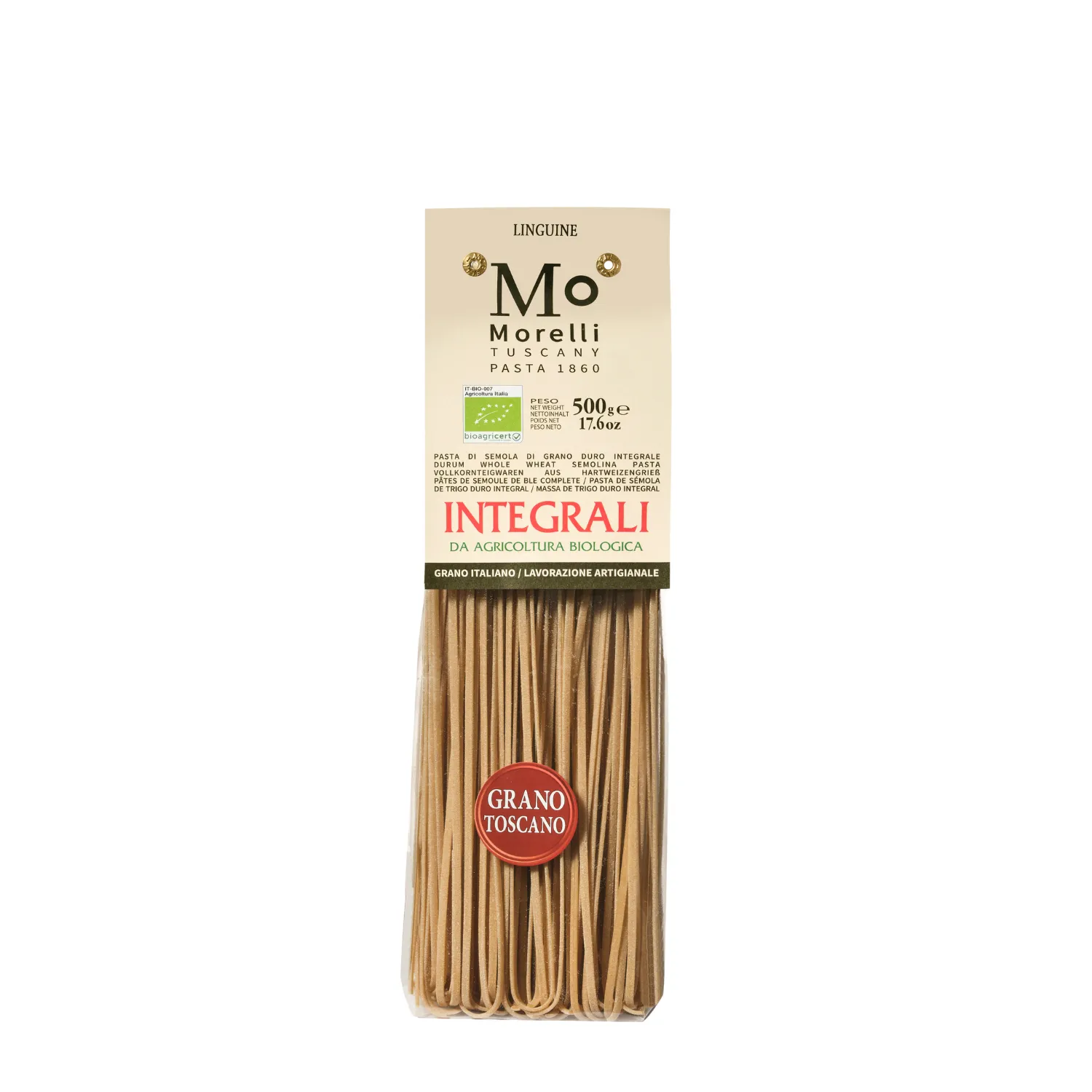 Le Linguine Integrali BIO di Antico Pastificio Morelli sono realizzate con semola di grano duro integrale e acqua, per una pasta ricca di fibre e dal gusto autentico. La consistenza corposa e il sapore rustico del grano le rendono ideali per valorizzare condimenti leggeri e ricette tradizionali. Pasta artigianale che mantiene un’ottima tenuta in cottura. Tempo di cottura: 5/6 minuti.