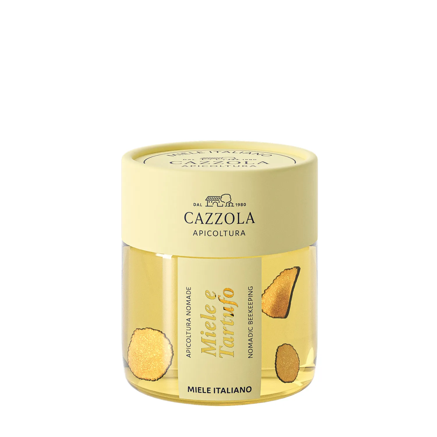 Il Miele di Acacia con Tartufo di Apicoltura Cazzola è una prelibatezza gastronomica che unisce la dolcezza del miele di acacia italiano al profumo intenso e raffinato del tartufo. Prodotto con ingredienti naturali selezionati – 99,3% miele di acacia e 0,4% tartufo essiccato in scaglie – arricchito con aroma naturale, regala un sapore armonioso e bilanciato. Ideale per accompagnare formaggi stagionati, carni rosse o piatti gourmet. Realizzato secondo i principi HACCP, è privo di additivi e allergeni, con una shelf life di 36 mesi dal confezionamento.