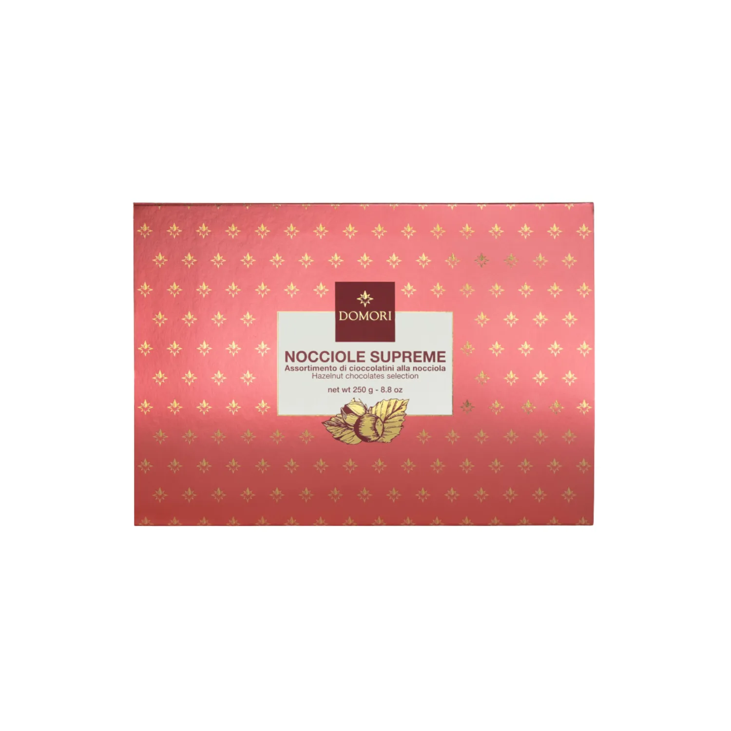 Le Nocciole Supreme Domori sono praline artigianali d’eccellenza, realizzate con le migliori Nocciole Piemonte IGP e il finissimo cioccolato Domori. Un assortimento di cremini, tartufi e gianduiotti preparati con cioccolato fondente e al latte della linea Arriba, dal profilo aromatico intenso e rotondo. Ideali come dolce regalo o per un momento di piacere gourmet, sono racchiuse in un elegante cofanetto in cartoncino firmato Domori.