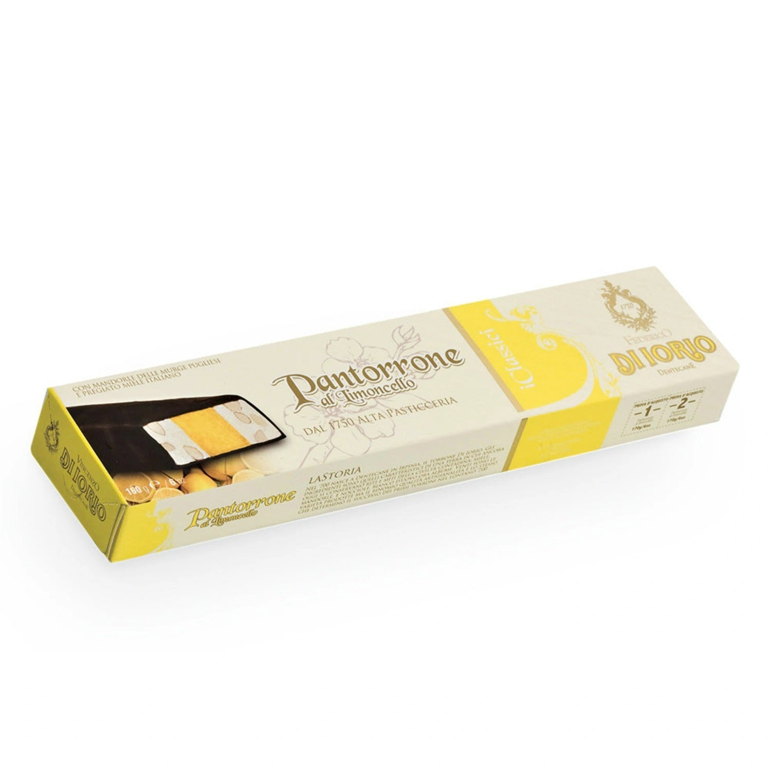 Torrone classico alla mandorla farcito al pan di spagna al gusto di limone e ricoperto di cioccolato fondente. Di sapore deciso e alcolico, si presenta come una barretta di cioccolato. L’igroscopicità della pasta di torrone a contatto con il liquore col tempo tende a sciogliere il torrone amplificando maggiormente il gusto al palato.