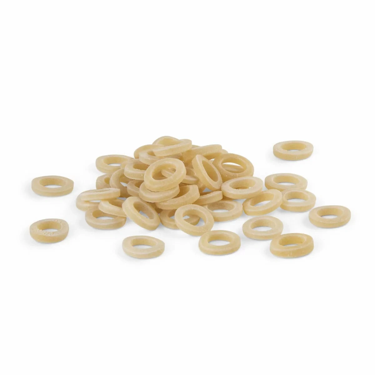 Gli Anelletti sono un formato di pasta dalle origini siciliane, molto utilizzato nella preparazione della pasta al forno e di timballi di pasta. L’essiccazione a bassa temperatura e la trafilatura a bronzo di questa pasta artigianale fa sì che regga molto bene la cottura e garantisca un prodotto gustoso, salutare e rispettoso dell’ambiente.