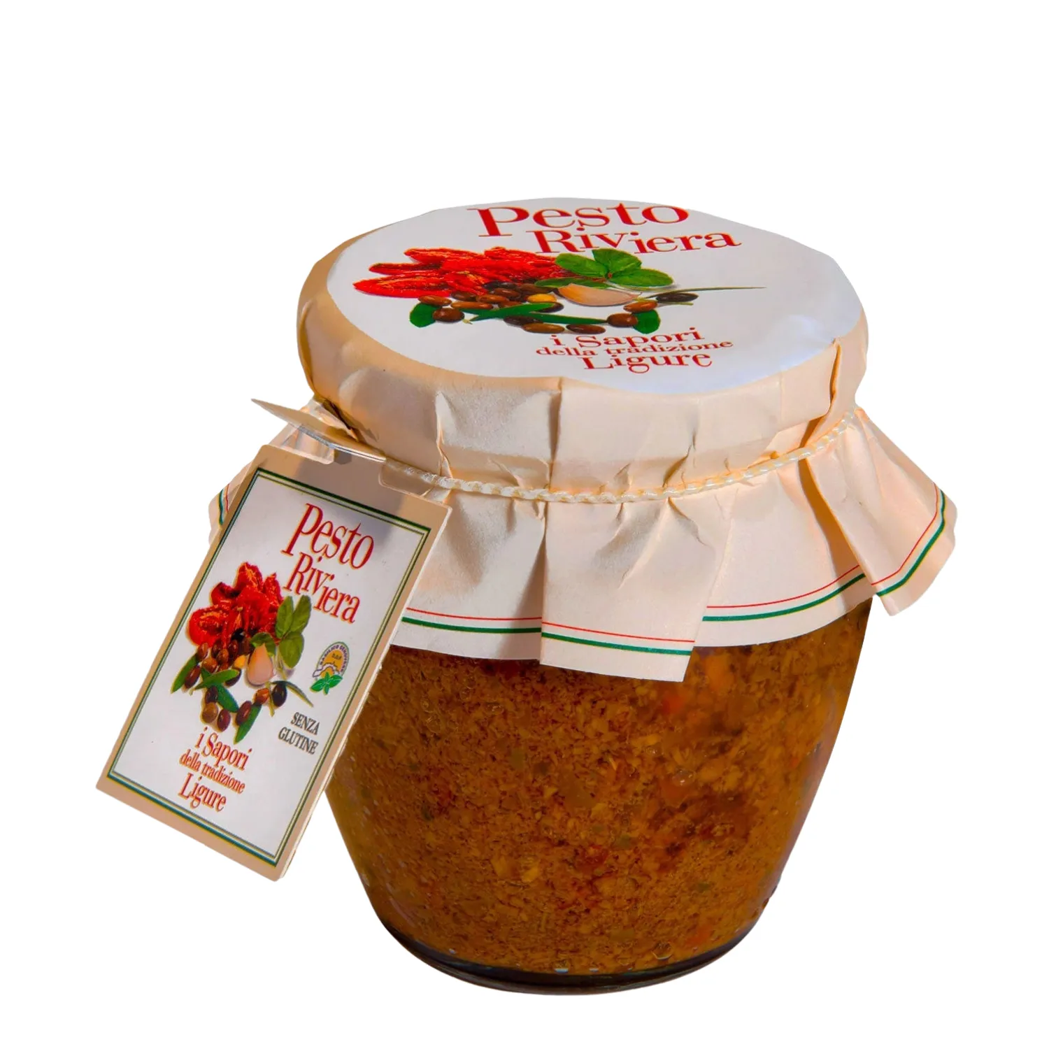 Il Pesto Riviera è un condimento tipico della cucina ligure che non tutti conoscono. È prodotto con ingredienti scelti e lavorati con cura ed è ottimo sia sulla pasta che nella preparazione di veloci antipasti.