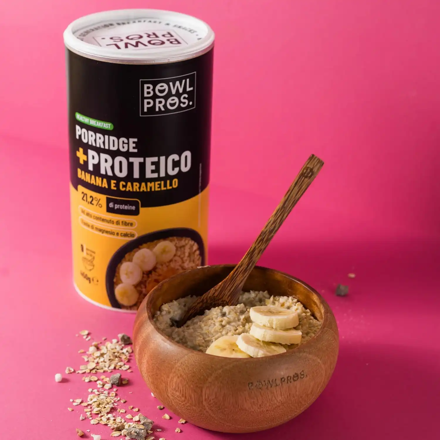 Il Protein Porridge Banana e Caramello Salato di Bowlpros è un mix nutriente e goloso, ideale per chi cerca energia e proteine a colazione o dopo l’allenamento. Realizzato con fiocchi d’avena, proteine del siero di latte, banana essiccata e un irresistibile tocco di caramello salato. Ottimo da gustare con latte o bevande vegetali per un pasto bilanciato e proteico.