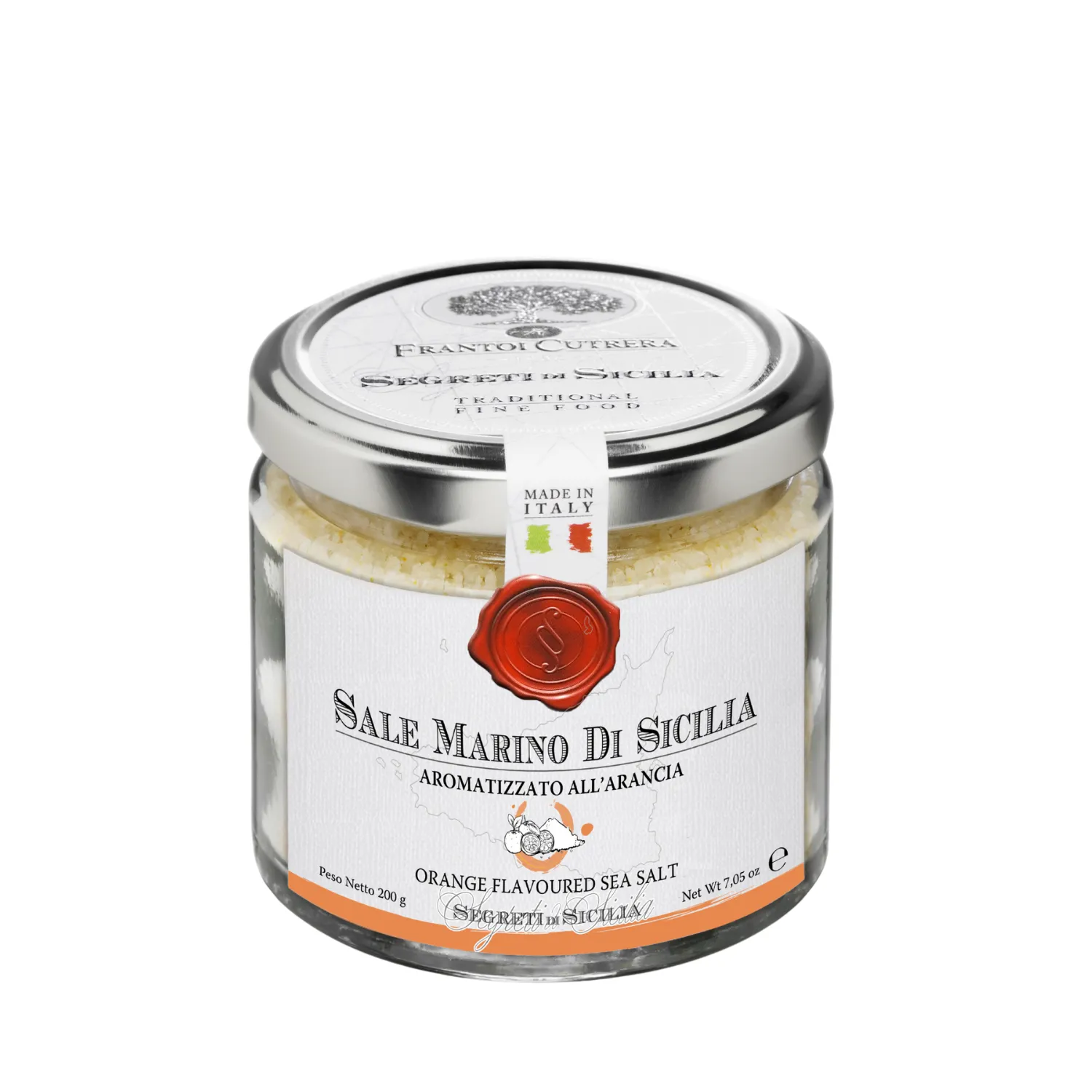 Il Sale Marino di Sicilia aromatizzato all’Arancia è ottenuto da sale marino integrale di Trapani, miscelato con scorze di arancia essiccate secondo un processo artigianale. Senza conservanti né coloranti, è un prodotto genuino che unisce la sapidità naturale del sale marino al profumo fresco e agrumato dell’arancia. Il colore leggermente aranciato e il profumo caratteristico lo rendono ideale sia a crudo che in cottura. Perfetto per piatti a base di pesce, insalate fresche, carni bianche e verdure grigliate. Il vasetto da 190 g è pratico e ideale anche per un uso gourmet quotidiano.