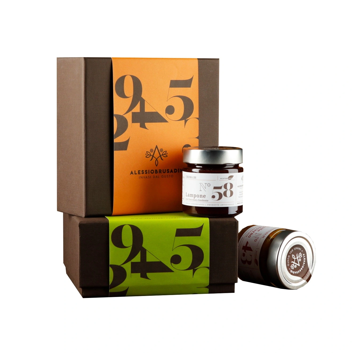 Elegante scatola regalo con una selezione di creme extra di frutta al cioccolato, le più golose! Per merende golose, create per i più piccoli e per i più golosi!