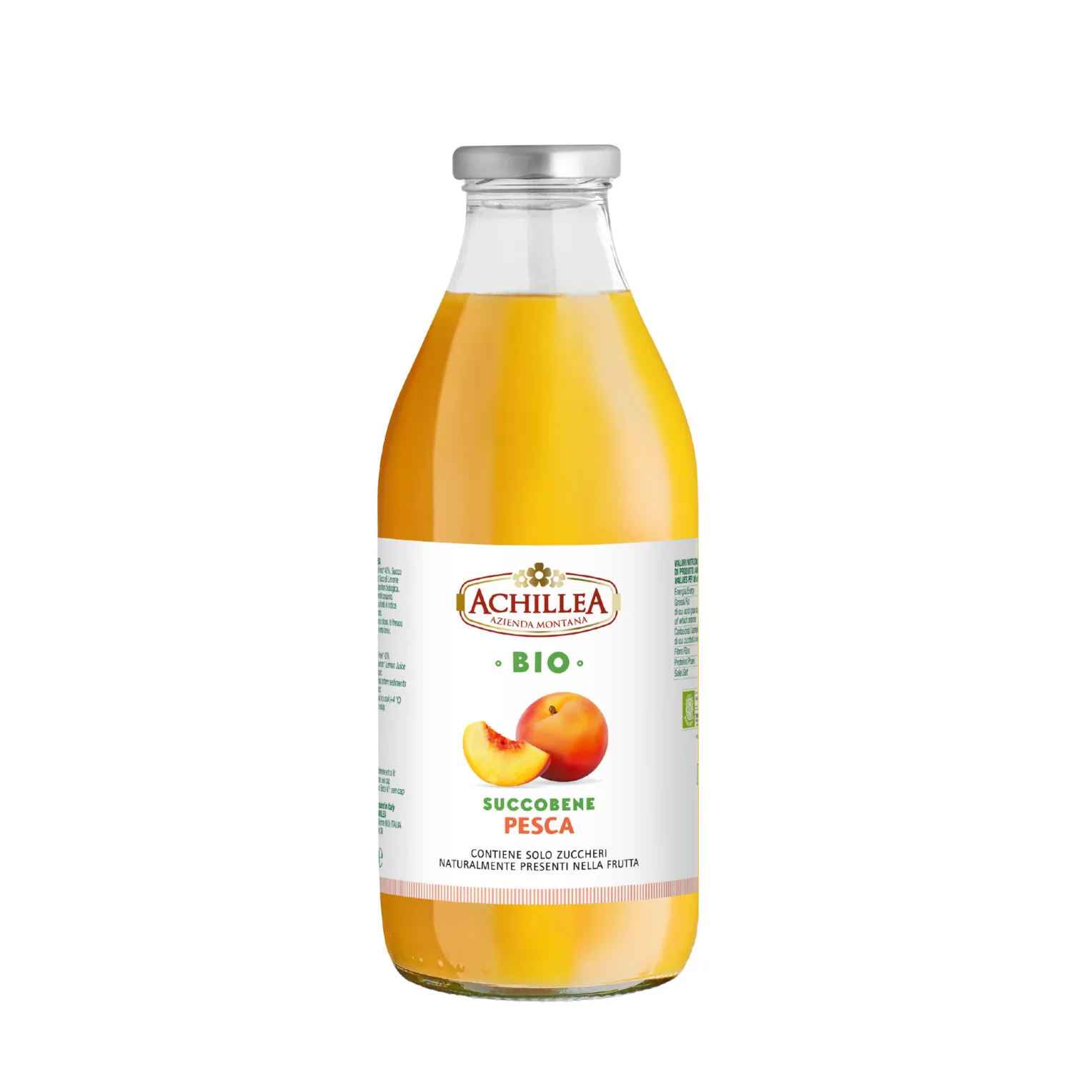 Il Succobene Pesca Bio Achillea è una bevanda biologica naturale ottenuta da purea di pesca e succo di mela. Dal gusto pieno, morbido e genuino, conserva tutta la dolcezza della frutta matura e il profumo intenso delle pesche italiane. Ideale per colazioni sane o pause rinfrescanti, è un succo biologico senza conservanti né OGM, pensato per tutta la famiglia.