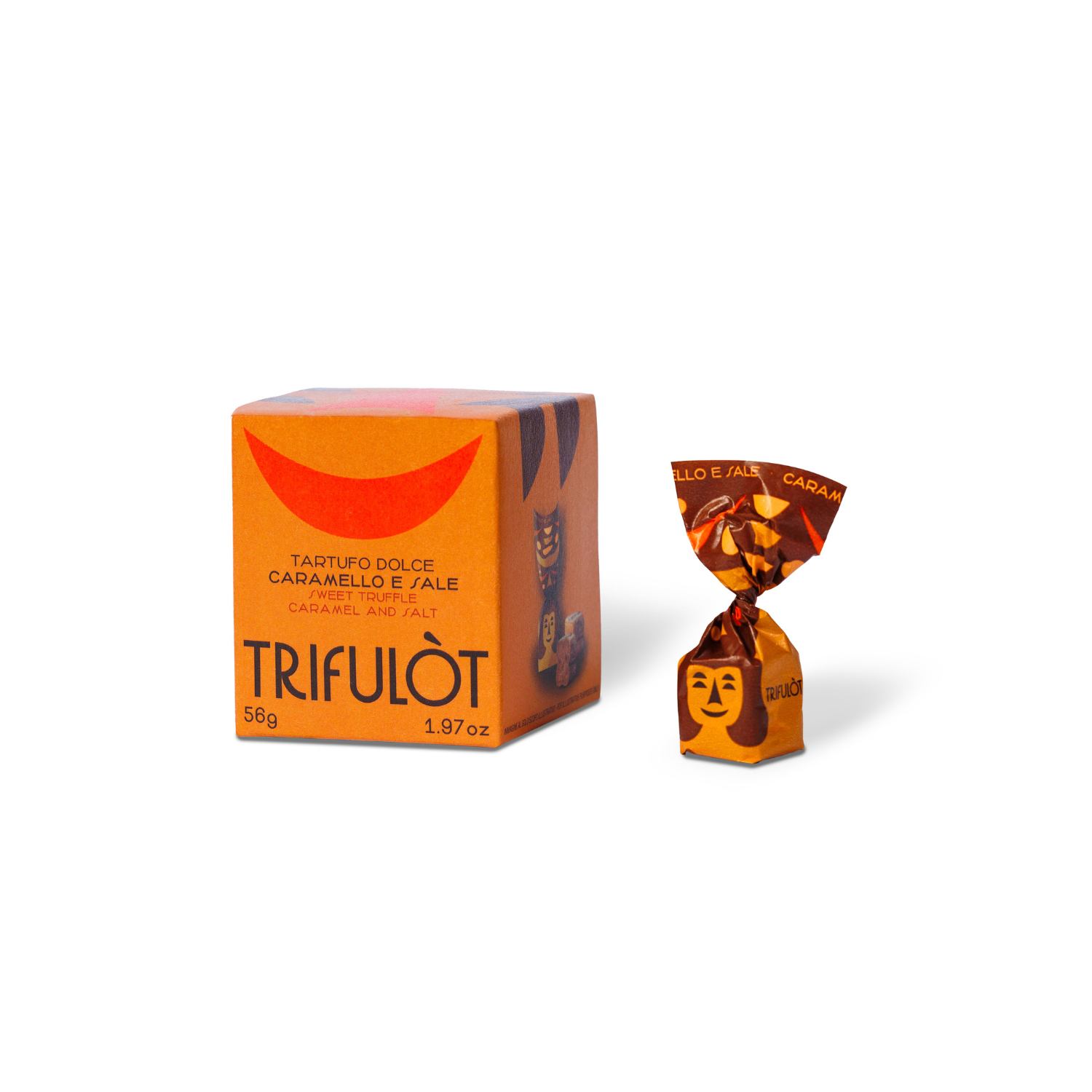 Il Tartufo Dolce Caramello di Tartuflanghe è una raffinata pralina al cioccolato bianco, arricchita da croccante di caramello e un delicato tocco di sale di Guérande IGP. Morbido e profumato, racchiude un perfetto equilibrio tra dolcezza e note sapide che esaltano il gusto del cioccolato e del caramello. Un piccolo capolavoro gourmet in formato da 56 g.