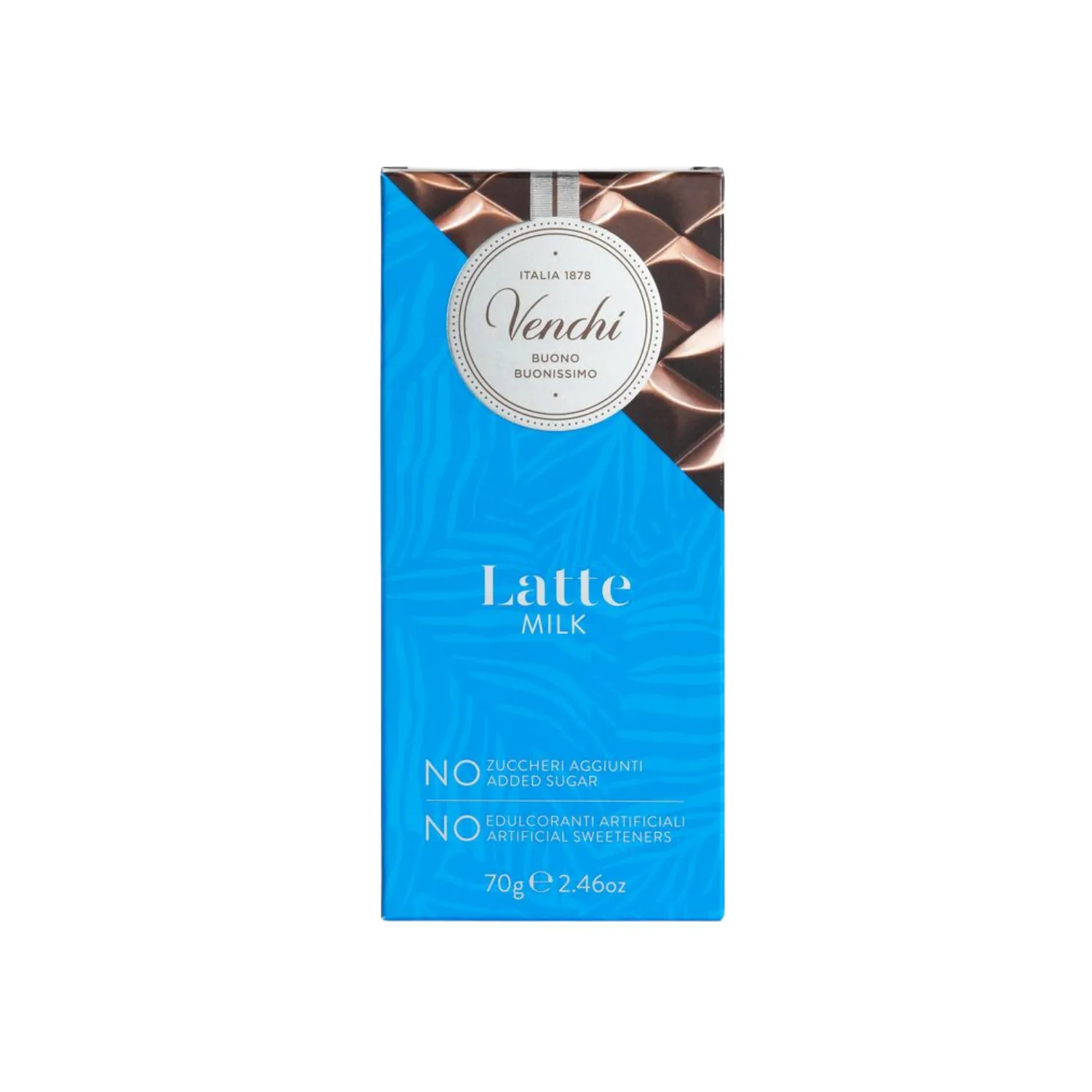 La Tavoletta al latte zero zuccheri aggiunti di Venchi è una deliziosa interpretazione del classico cioccolato al latte, pensata per chi desidera concedersi un momento di piacere senza rinunciare al benessere. Realizzata con latte intero in polvere senza lattosio e dolcificata naturalmente con fibra vegetale di cicoria, offre un gusto pieno e cremoso, privo di zuccheri aggiunti. Il risultato è una tavoletta dal sapore equilibrato, con note di cacao e latte perfettamente armonizzate, ideale per chi segue uno stile di vita attento e bilanciato.