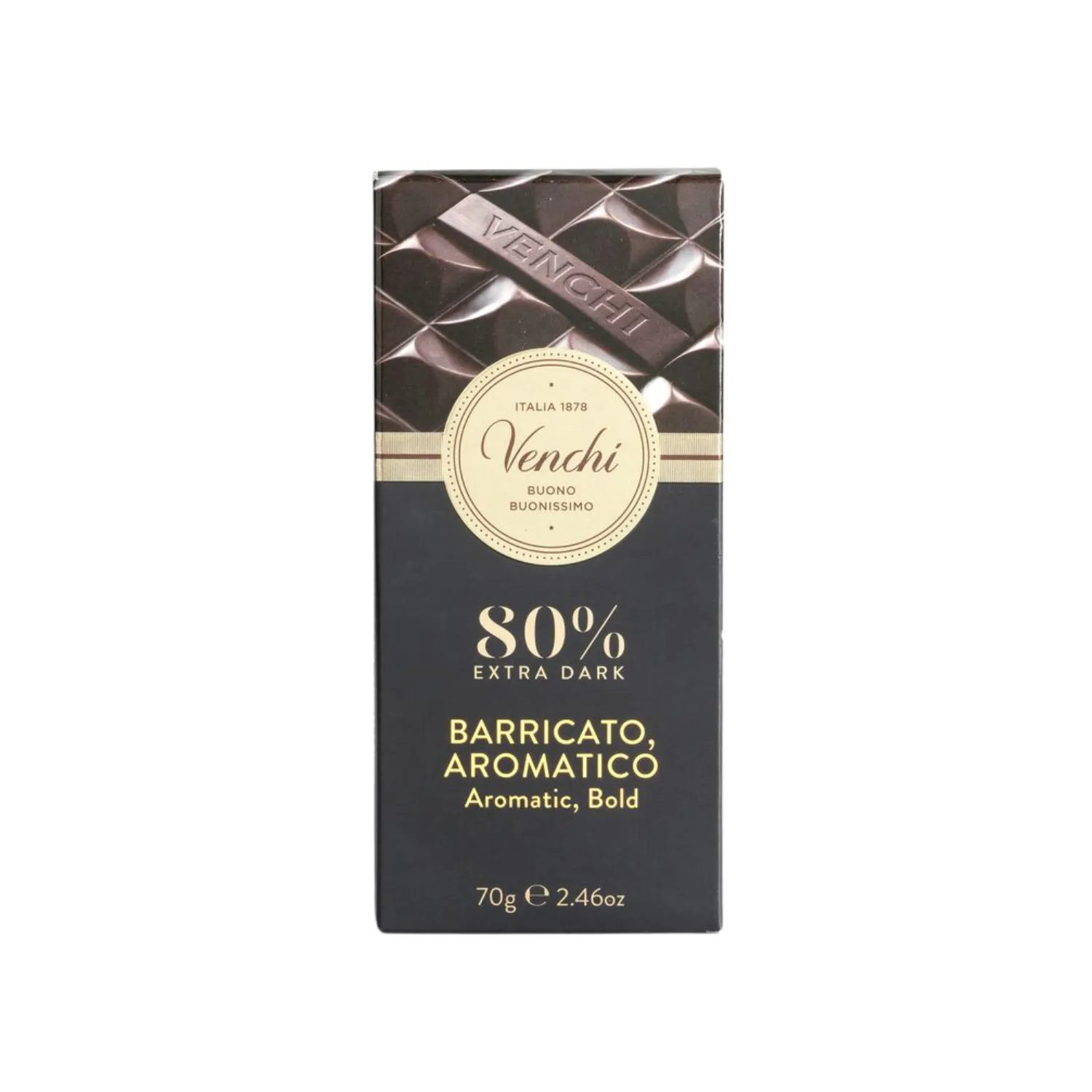 La Tavoletta fondente 80% di Venchi è un’eccellenza dedicata agli amanti del cioccolato puro e aromatico. Realizzata con una miscela di pregiata massa di cacao e burro di cacao selezionati, sprigiona un profilo aromatico intenso e complesso, con note di tostatura, frutta secca e leggera acidità naturale. La sua struttura corposa e vellutata offre un gusto deciso e persistente, perfetto per chi cerca un’esperienza autentica e raffinata di cioccolato fondente.