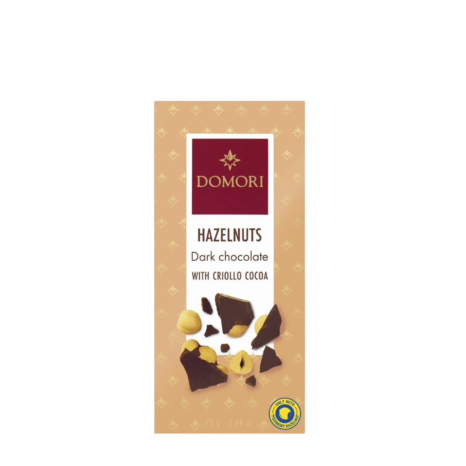 Ingredienti Cioccolato fondente 80% (cacao minimo 80% - massa di cacao, di cui massa Criollo 22%, zucchero, emulsionante: lecitina di girasole), nocciole Piemonte IGP 20%.