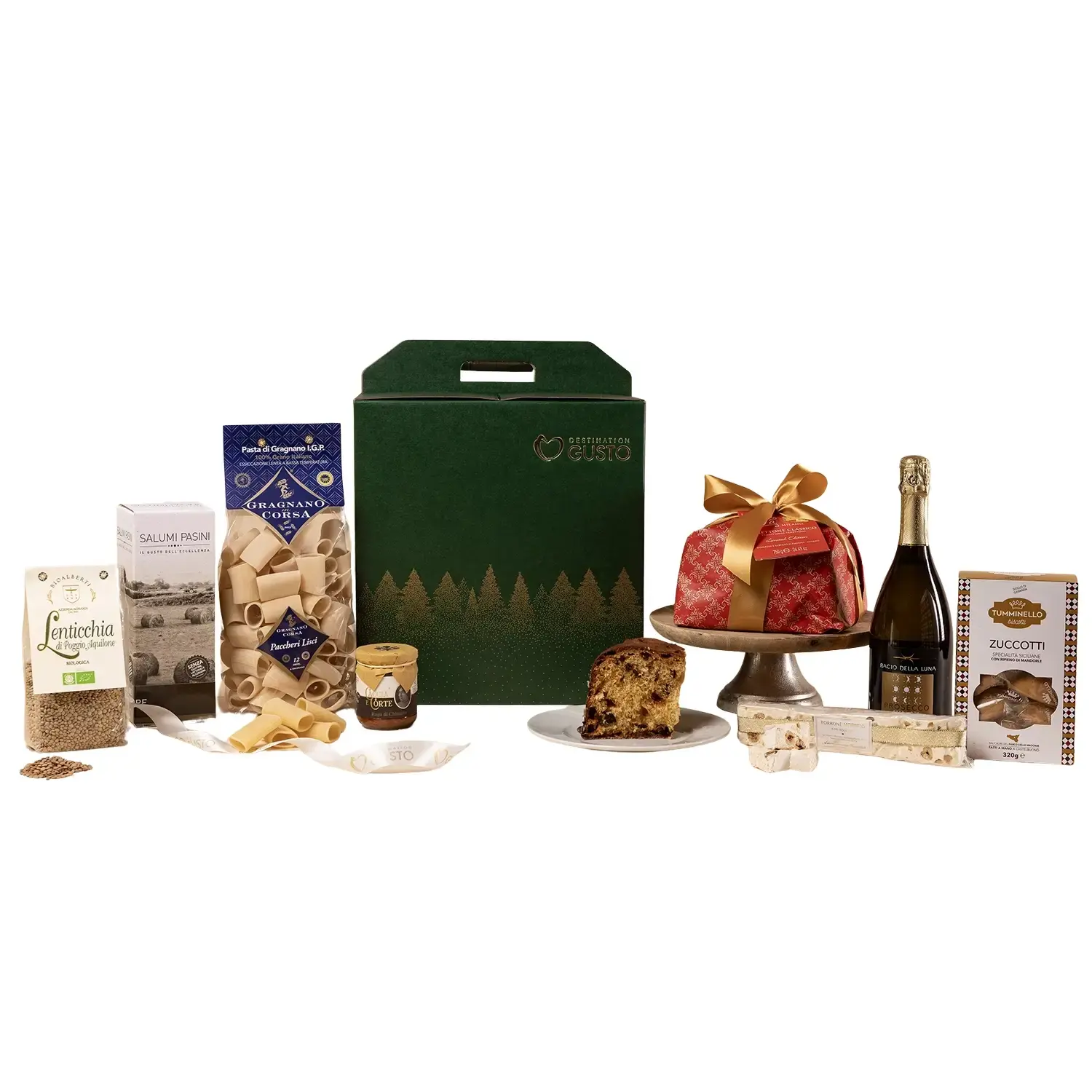 Un cesto raffinato, curato in ogni dettaglio, ideale come regalo gourmet o per celebrare in famiglia il Veglione con i migliori prodotti del Made in Italy.